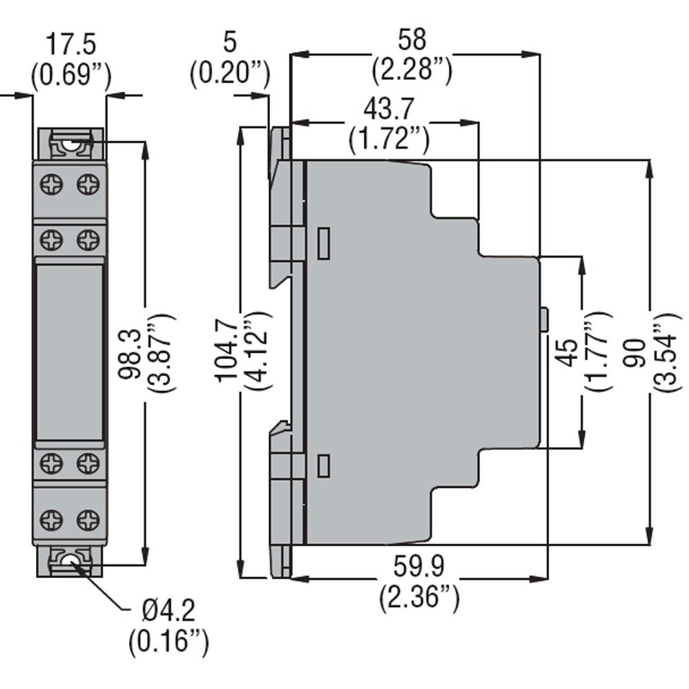 – contenitore modulare DIN 43880 (1 modulo), adatto per fissaggio su profilato omega da 35mm o fissaggio a vite