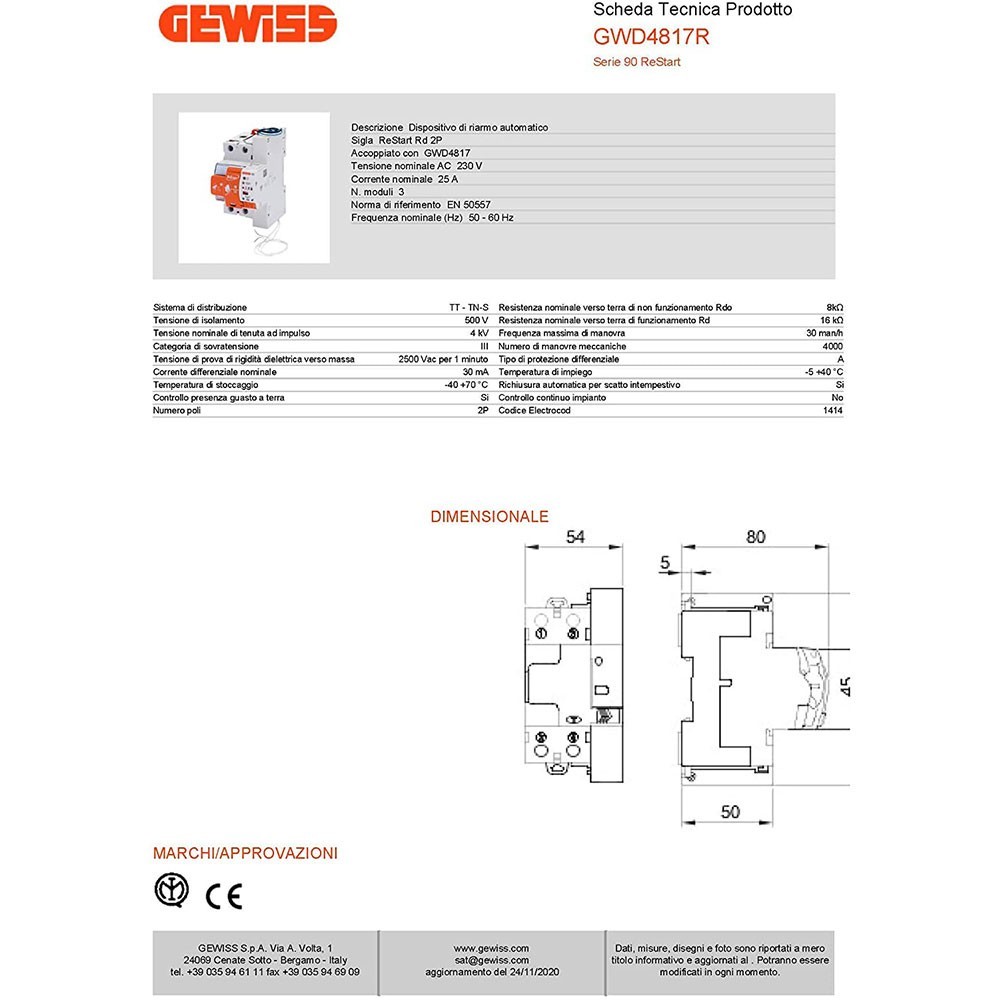 Restart Gewiss D4817R interruttore differenziale a riarmo automatico EX 94817R